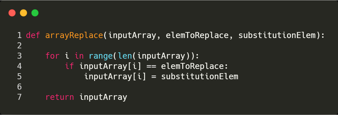 2. Loop을 돌며, 만약 element 가 elemToReplace 와 값이 같으면, substitutionElem으로 교체해준다.