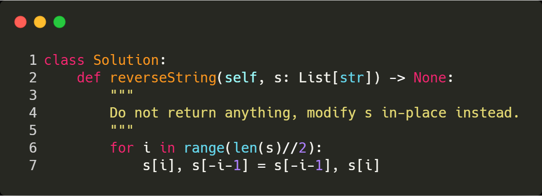 1. input 리스트의 중간지점까지 돌면서 첫번째와 끝쪽의 값을 계속해서 Swap 해준다.