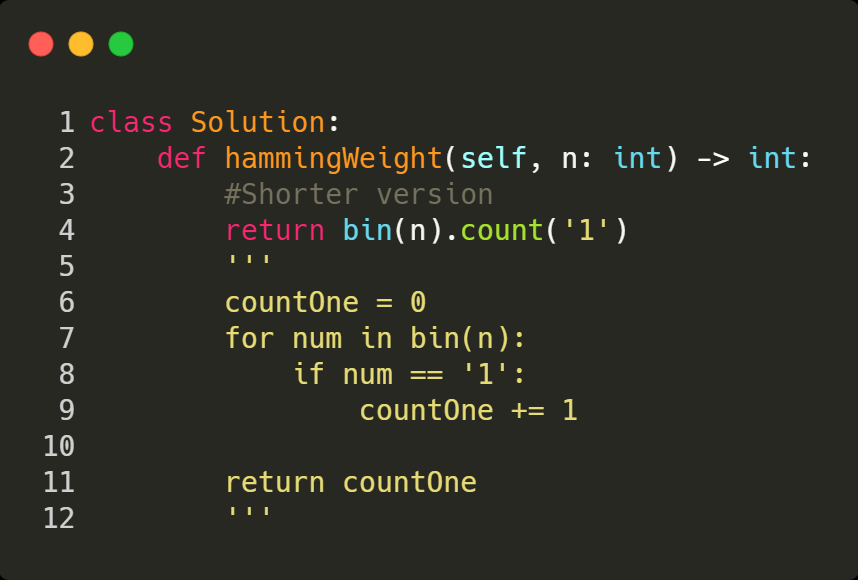 Explanation: The input binary string 00000000000000000000000000001011 has a total of three '1' bits.