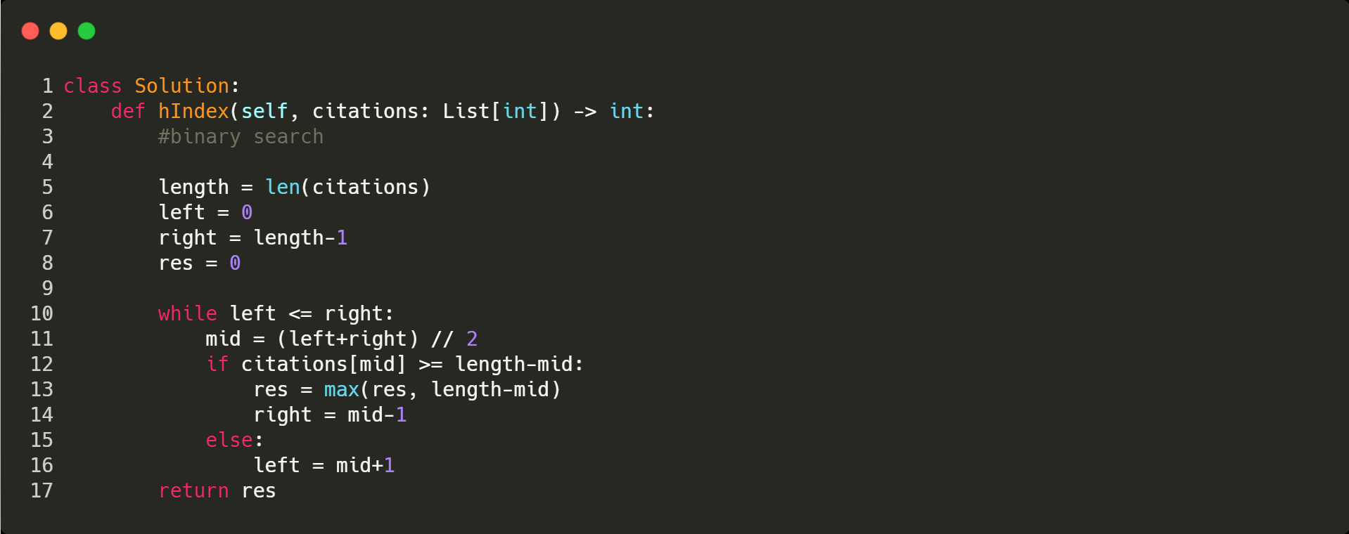 - This is a follow up problem to H-Index, where citations is now guaranteed to be sorted in ascending order.