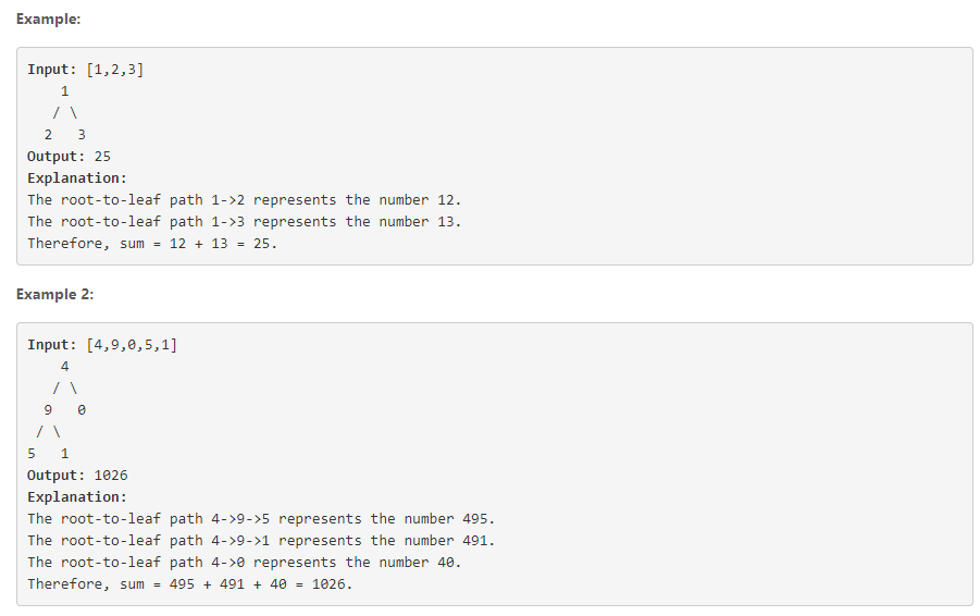 An example is the root-to-leaf path 1->2->3 which represents the number 123.