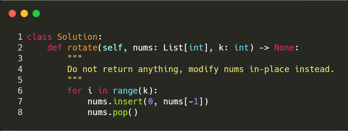 1. We loop the len(k) times and pop the last element and insert into the beginning of the array.