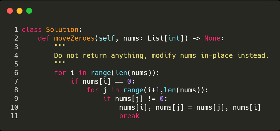 1. set 1 pointer of for loop for the zero-value index in the nums list.