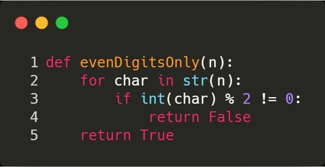 evenDigitsOnly(n) = true; - For n = 642386, the output should be