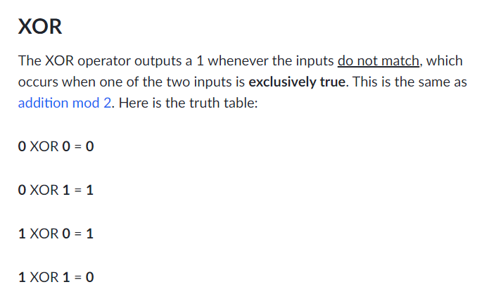 https://www.khanacademy.org/computing/computer-science/cryptography/ciphers/a/xor-bitwise-operation