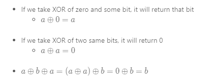 Bit manipulation: 1XOR1 = 0, 2 XOR 2=0, 0 XOR 4 = 4.