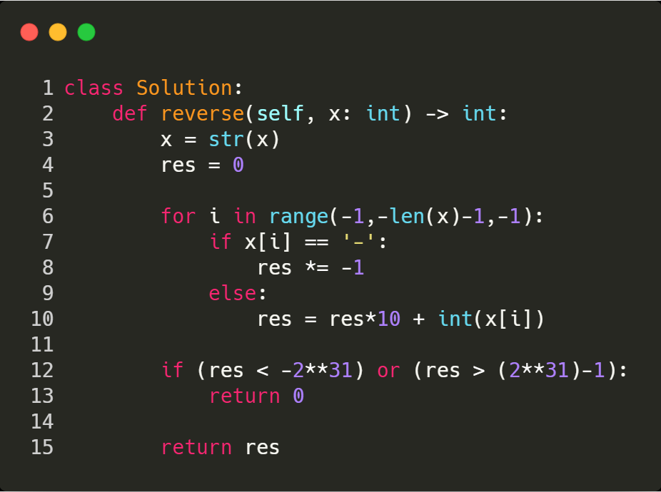 4. if the reversed value is less than the system minimum value or bigger than the system maximum integer value, then we return 0.