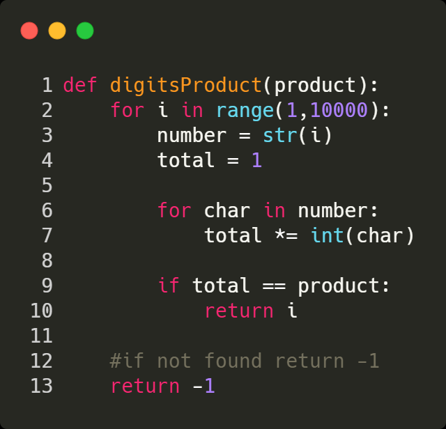 digitsProduct(product) = 26; - For product = 19, the output should be