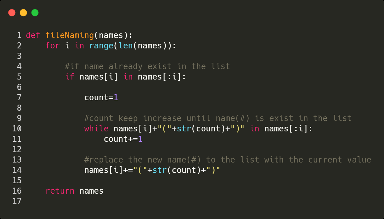 3. Once we found the "name(#)" format does not exist in the previous index of the list, replace "name(#)" with a current index.