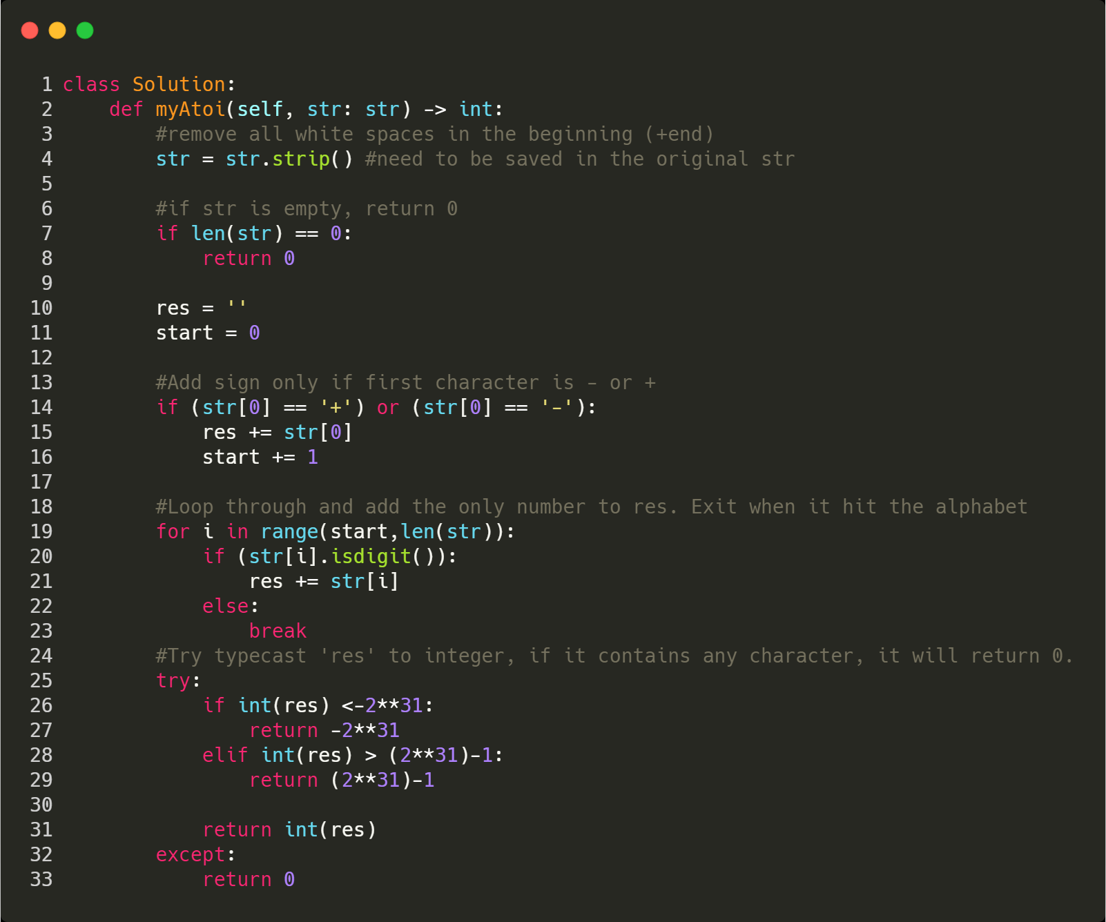 4. loop through the str, add the character if it is a number, otherwise breaks.