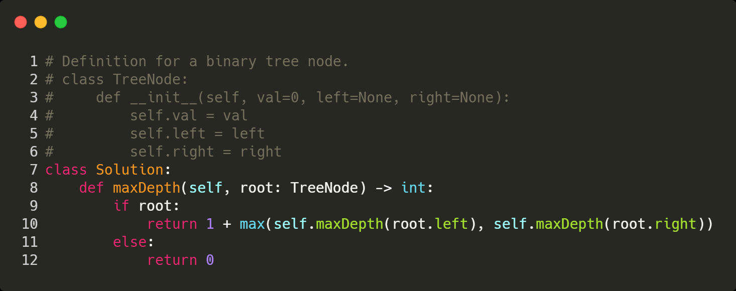 1. Find the maximum length of depth by comparing the left and right subtree.