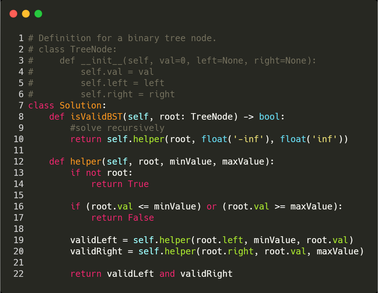2. If any subtree does not valid with a BST requirement, it will return False.