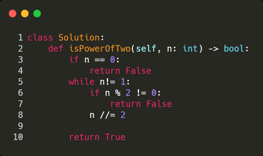 2. After the loop, return True since the number is a power of two.
