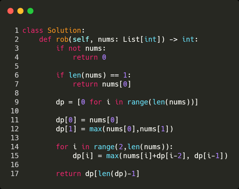 Explanation: Rob house 1 (money = 2), rob house 3 (money = 9) and rob house 5 (money = 1). Total amount you can rob = 2 + 9 + 1 = 12.
