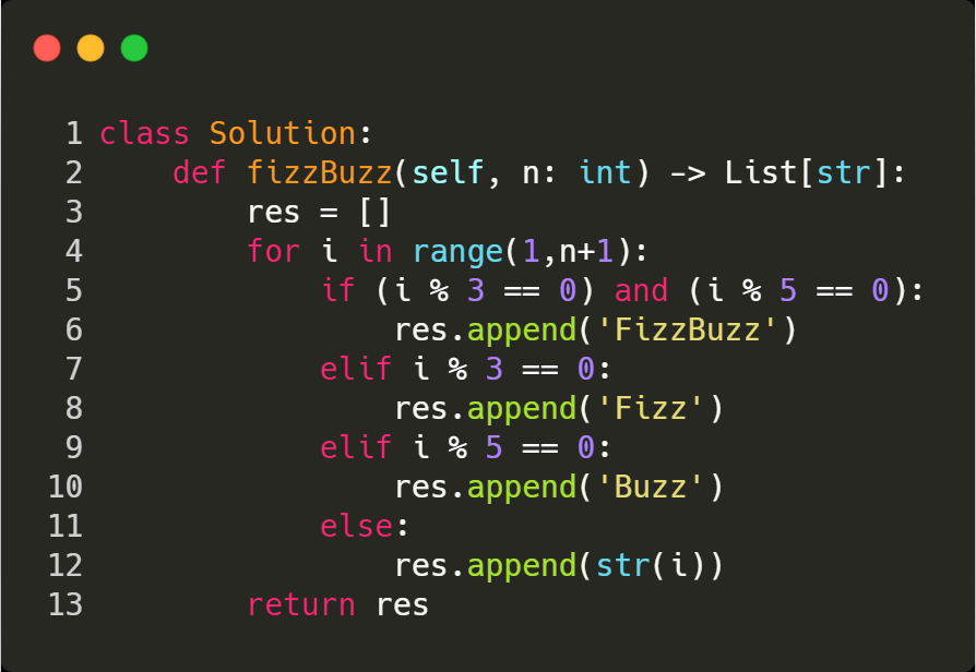 1. if number i is divisible by both, we append 'FizzBuzz' to the list.